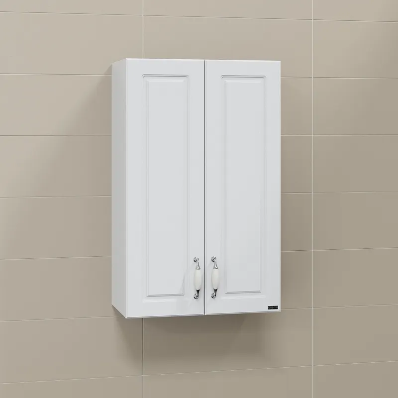 - Современный дизайн: Глянцевая поверхность и классический стиль шкафа добавят элегантности любой ванной комнате.