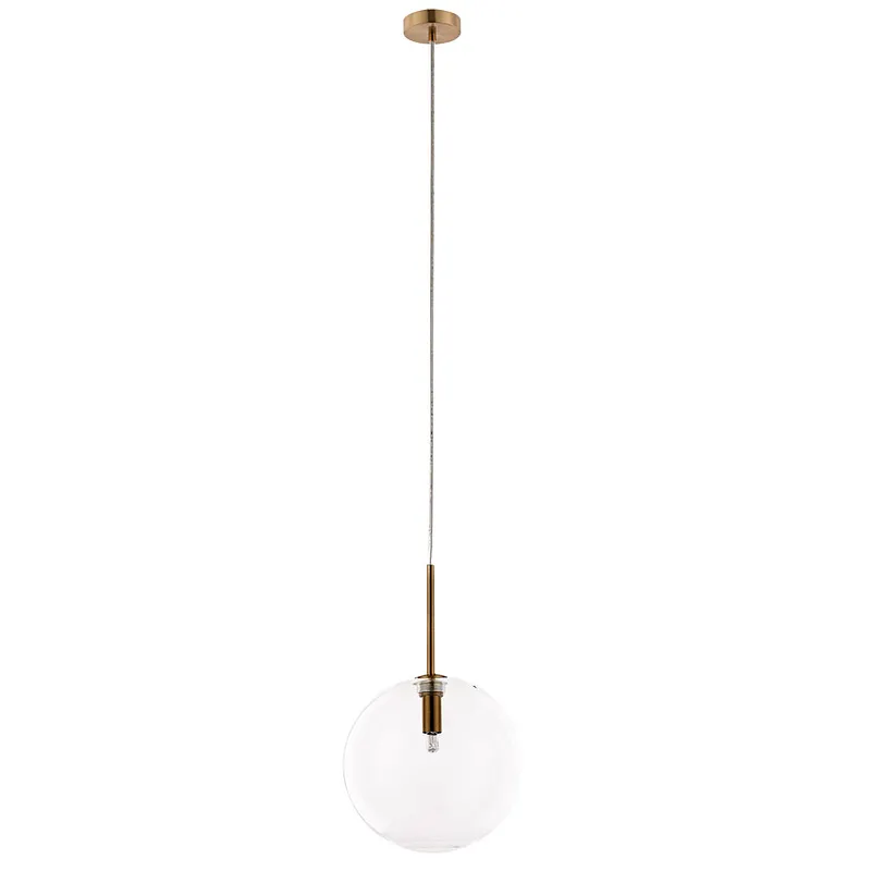 • Эстетичный дизайн: Подвесной светильник в современном стиле с бронзовой арматурой и прозрачным плафоном создаст уютную атмосферу.