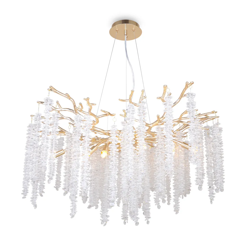 Материалы арматуры —металл, цвет — золото. Хрустальные декоративные элементы напоминают капельки - создают глубокие переливы света. Дизайн в трендовой растительной тематике. Источник света — лампа с цоколем G9 и с поворотной функцией.