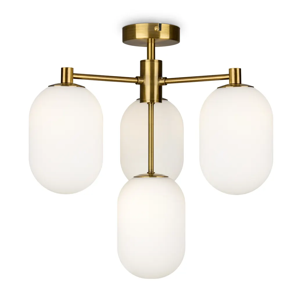 Арматура из металла цвета латуни. Плафоны овальной формы из белого матового стекла. Форма плафонов дает рассеянный свет, максимальная пропускная способность. Источник света лампа. Цоколь G9. Широкая линейка позволяет организовать комплексное освещение в едином стиле.