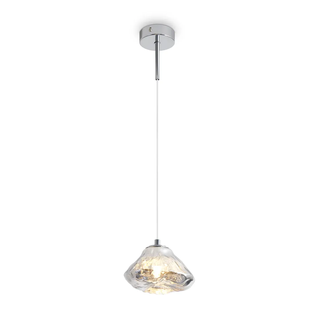 Серия Eatery отличается необычной формой плафонов с покрытием гальваники хромированного оттенка. Уникальный дизайн плафонов, создающий эффект перелива электрических бликов. Плафоны выполнены из дымчатого стекла, что усиливает визуальный эффект. Арматура — металл в цвете хром. Источник свет - цоколь G9, рассчитаны на лампы мощностью до 40 Вт. Провод прозрачный. Серия включает: одинарный подвес, который можно использовать и как настенное бра и подвесной светильник с 10 источниками света.