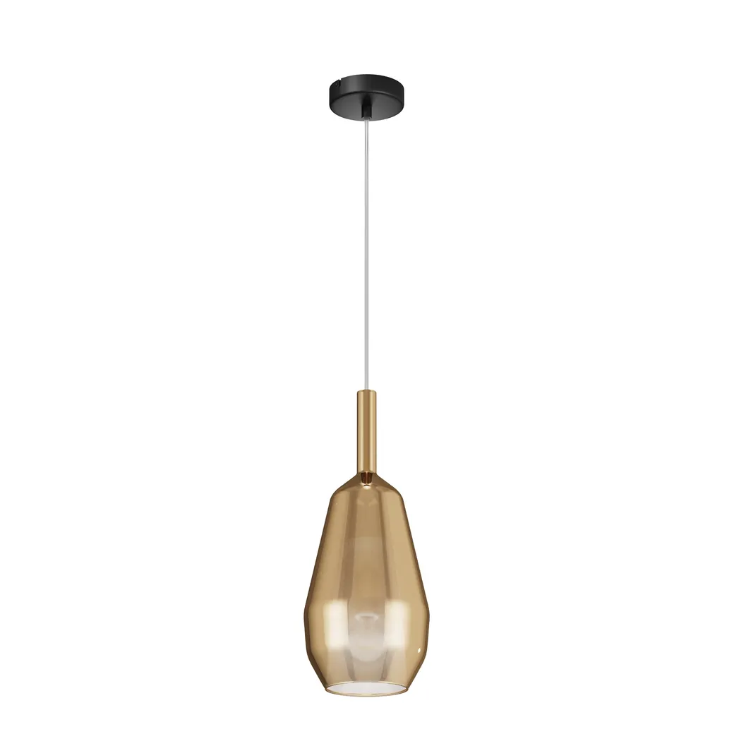 Металлическое основание, цвет — черный. Двойные стеклянные плафоны. Многообразные геометрические формы плафонов. Цвет стекла: зеркальный золотой, кофейный и дымчатый, а также градиентный белый. Регулируемая длина провода — 3 метра. Источник света — лампа с цоколем Е27.