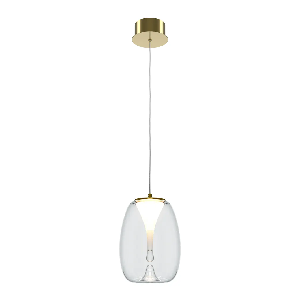 Цвет арматуры - сатинированное золото. Плафоны из двойного стекла. Внешние плафоны в двух цветах: прозрачный и гальванизированный серый с эффектным градиентом - придают освещению глубину и насыщенность. LED источник света с цветовой температурой 3000K. Провод подвесных светильников регулируемый - длина 3 метра. Идеальны для помещений с высокими потолками.