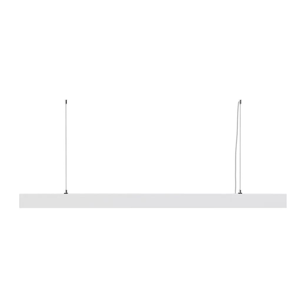 Подвесной светильник для коммерческих помещений. Корпус: металл (черный/белый). Механический/сенсорный переключатель цветовой температуры (2700K/3000K/4000K). Угол рассеивания 100°. CRI 90. Для основного освещения.