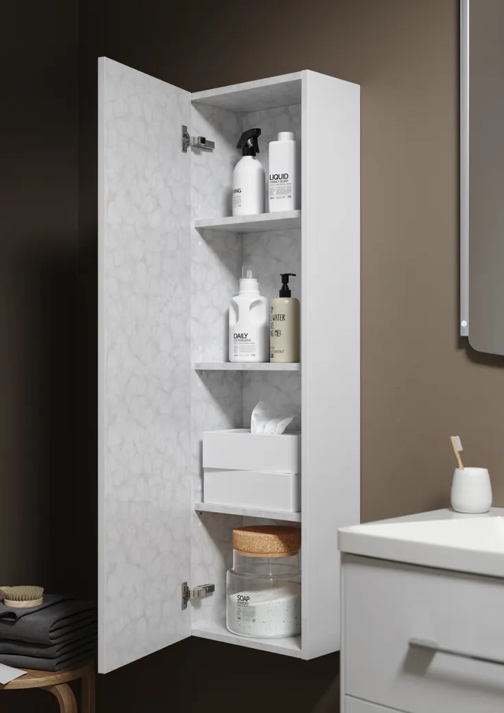 Подвесной универсальный левый/правый пенал с одной дверью и системой открывания «push-to-open» в белом цвете арт-An.05.35/W