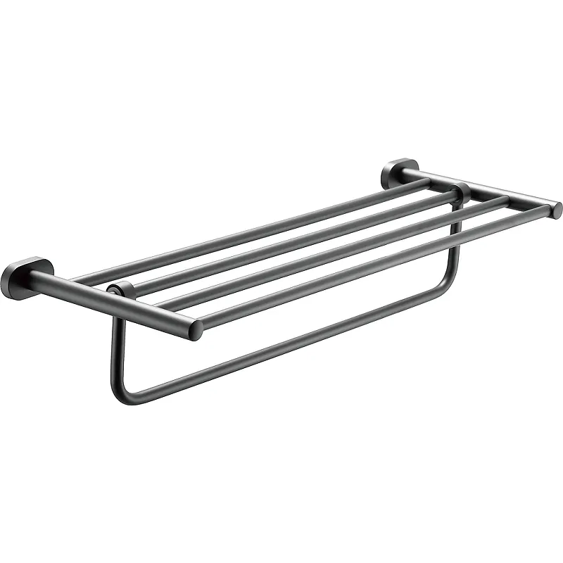 Полка для полотенец Belz B905 B90524.Характеристики: Цвет: вороненая сталь. Материал: нержавеющая сталь. Габариты (ШхВхД): 617х120,5х215 мм. Монтаж: на стену. В комплекте поставки: Полка для полотенец. Крепление. Инструкция.