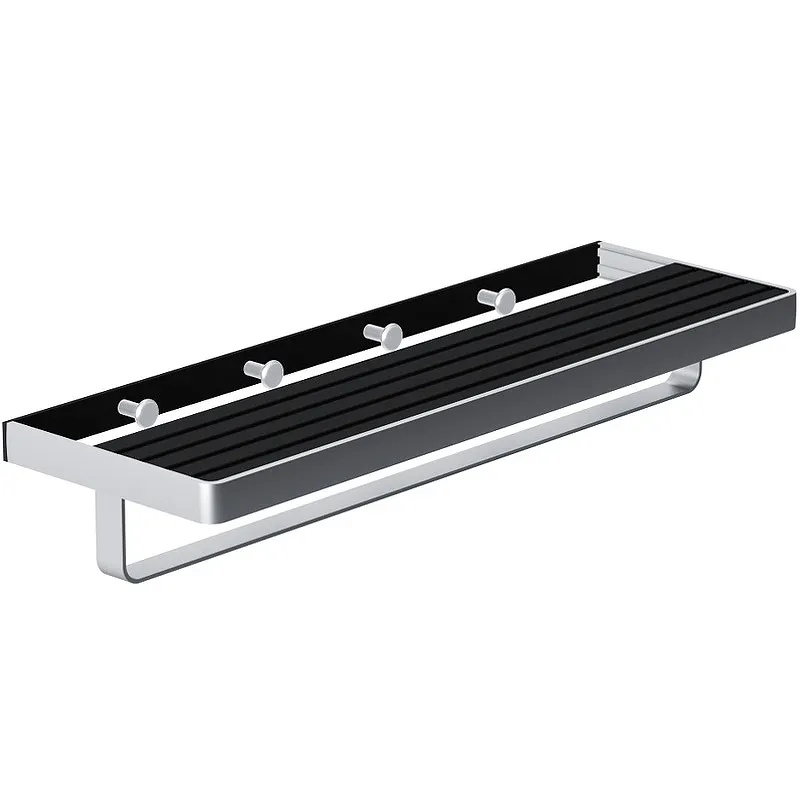 Полка для полотенец Damixa Jupiter DA7737700 с полотенцедержателем и крючками.Изысканный скандинавский дизайн изделия украсит современный интерьер ванной комнаты.Характеристики: Цвет: черный, хром. Материал: алюминий. Размеры (ШхВхД): 60х9х19,5 см. С четырьмя крючками для полотенец. С полотенцедержателем. Форма: прямоугольная. Монтаж: на стену. В комплекте поставки: полка для полотенец.