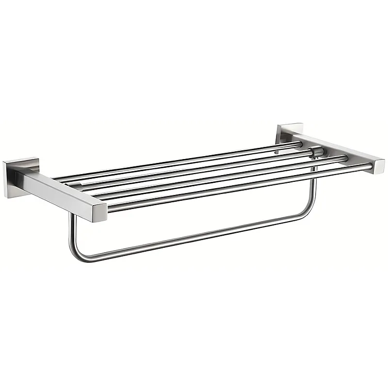 Полка для полотенец Frap F303 F30324 с полотенцедержателем.Характеристики: Цвет: сатин. Материал: нержавеющая сталь. Размеры (ШхВхД): 60х14,7х22 см. Монтаж: настенный. В комплекте поставки: Полка для полотенец. Полотенцедержатель. Набор креплений.