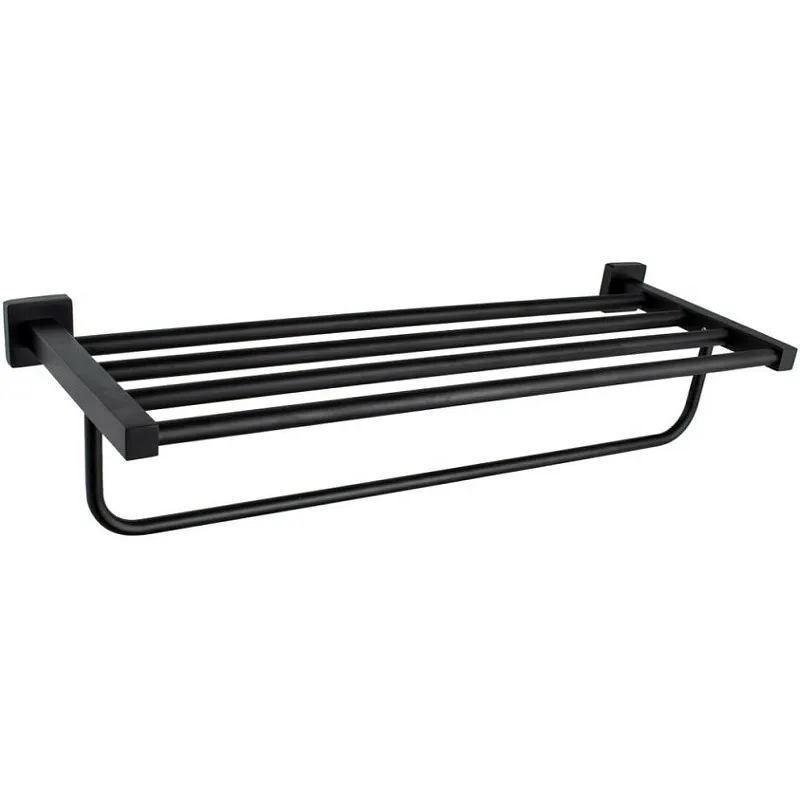Полка для полотенец Haiba HB8924.Характеристики: Цвет: черный матовый. Материал: нержавеющая сталь. Размеры (ШхВхД): 600х147х145 мм. Метод крепления: шурупы. Монтаж: настенный. В комплекте поставки: Полка для полотенец. Крепления.