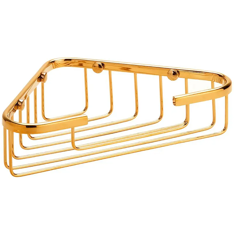 - Эстетичность и функциональность: Угловая полка-корзина из латуни с золотым покрытием улучшает дизайн любой ванной комнаты.