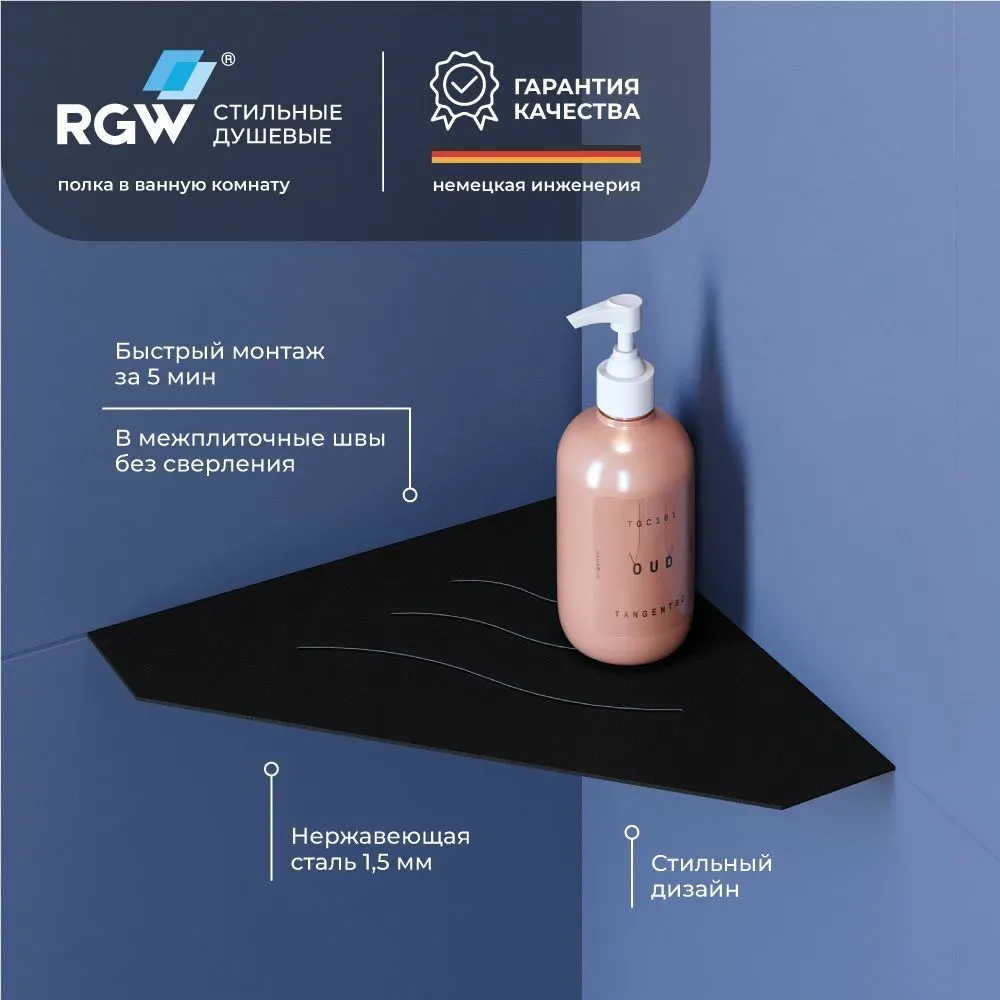 Полка RGW MT-03B/Черная Волна гармонично впишется в любую современную ванную комнату, обеспечивая функциональность и стиль. Легкий монтаж без сверления плитки, а также прочность и долговечность материала делают её отличным выбором для вашего дома. Купите полку RGW MT-03B и насладитесь удобством и красотой вашего душевого пространства.