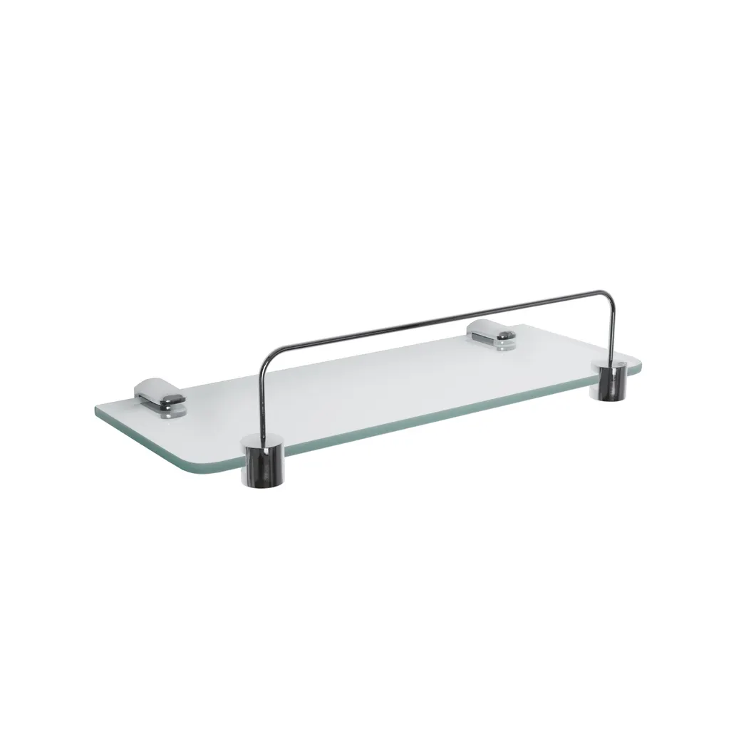 Стеклянна полка со стальным ограничителем и пластиковыми крепежами. Толщина стекла 5 мм.