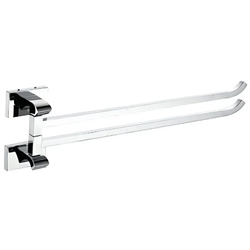Двойной полотенцедержатель Gappo G0712 поворотный.Характеристики: Цвет: хром. Материал: латунь. Размер (ШхВхД): 473х132х59 мм. Количество перекладин: 2. Монтаж: настенный. В комплекте поставки: Полотенцедержатель. Набор креплений.