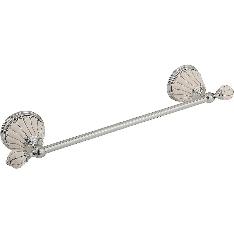 Полотенцедержатель Migliore Olivia 17562. Изделие выполнено из латуни и имеет высококачественное хромо-никелевое покрытие, которое при правильном уходе надолго сохранит свой блеск.Характеристики: Цвет: белый с декором платина, хром. Материал: латунь, керамика. Фактура: глянцевая. Форма: округлая. Размер (ШхВхГ): 44 х 7,6 х 10 см. Диаметр розетки: 7,6 см. Метод крепления: шурупы. Монтаж: настенный. В комплекте поставки: Полотенцедержатель. Крепления (шурупы).
