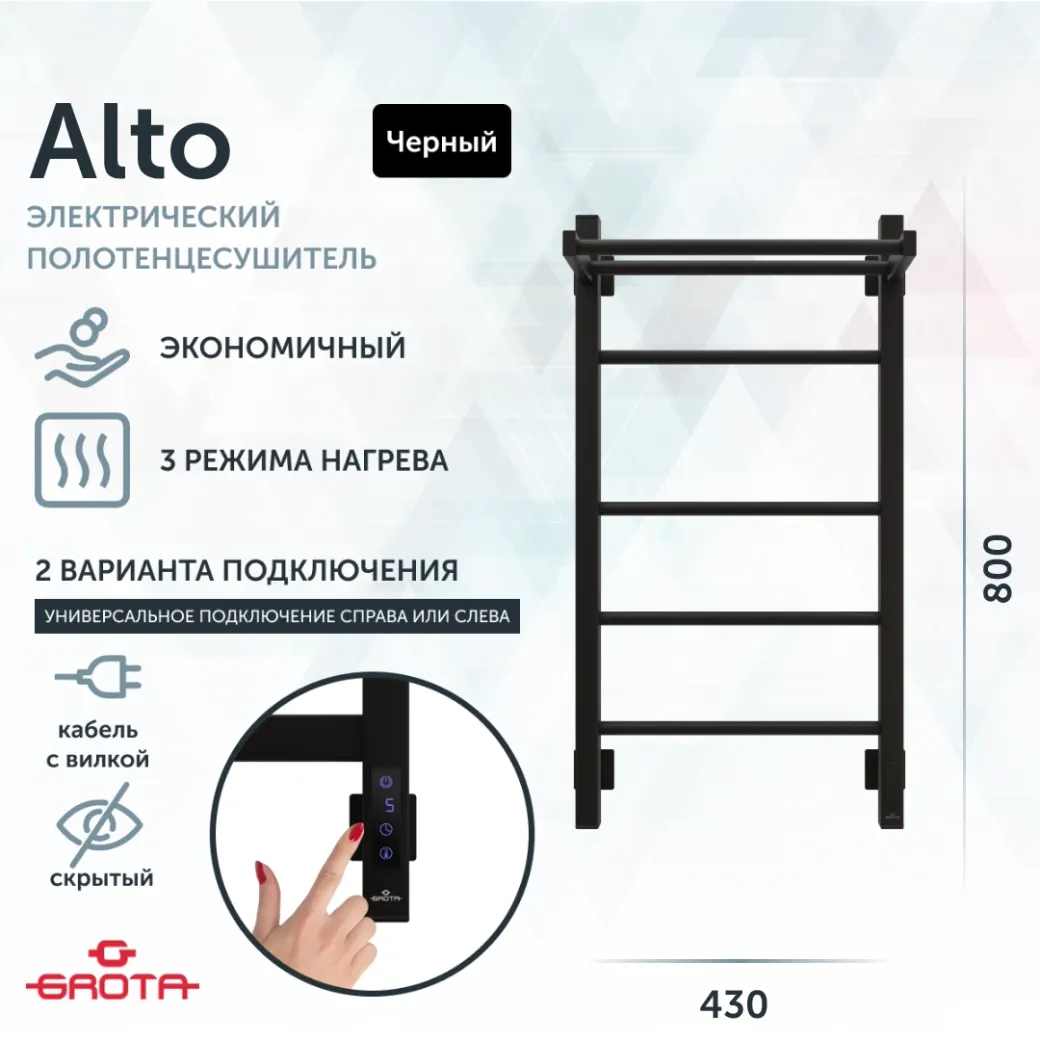 Полотенцесушитель электрический Grota Alto 430х800 черный арт-Alto 430х800 RAL9005 EL