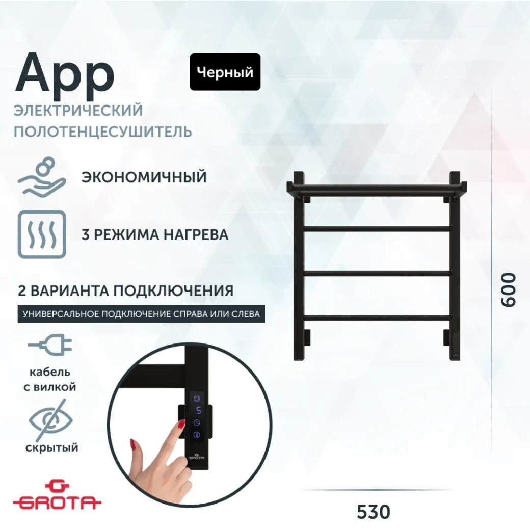 Полотенцесушитель электрический Grota App 530х600 черный арт-App 530х600 RAL9005 EL