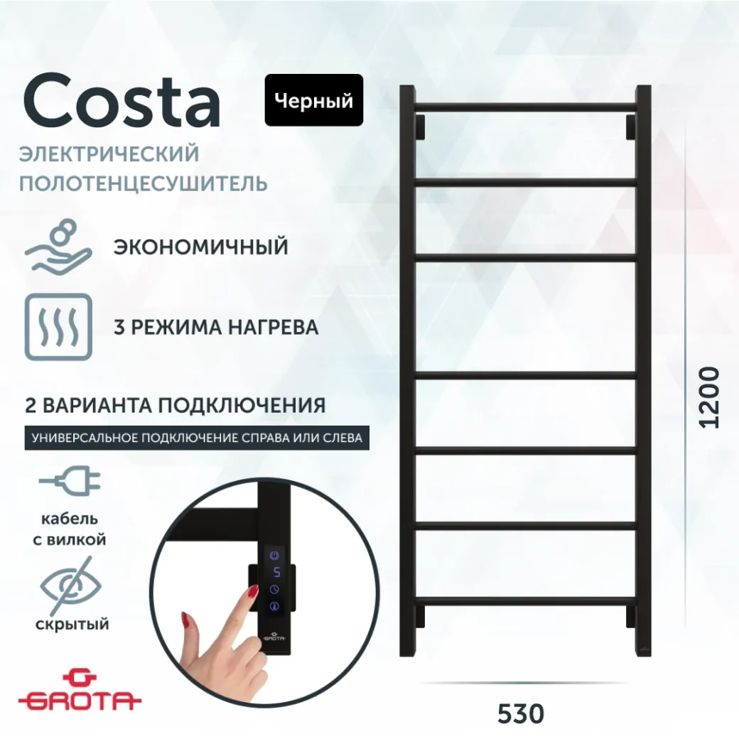 Полотенцесушитель электрический Grota Costa 530х1200 черный арт-Costa 530х1200 RAL9005 EL