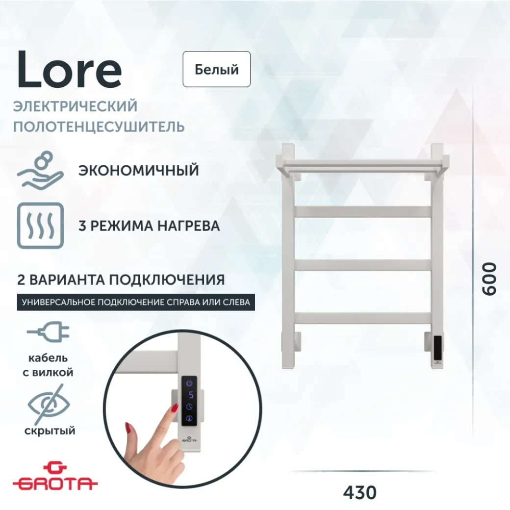 Полотенцесушитель электрический Grota Lore 430х600 белый арт-Lore 430х600 RAL9016 EL