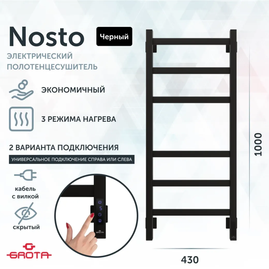 Полотенцесушитель электрический Grota Nosto 430х1000 черный арт-Nosto 430х1000 RAL9005 EL