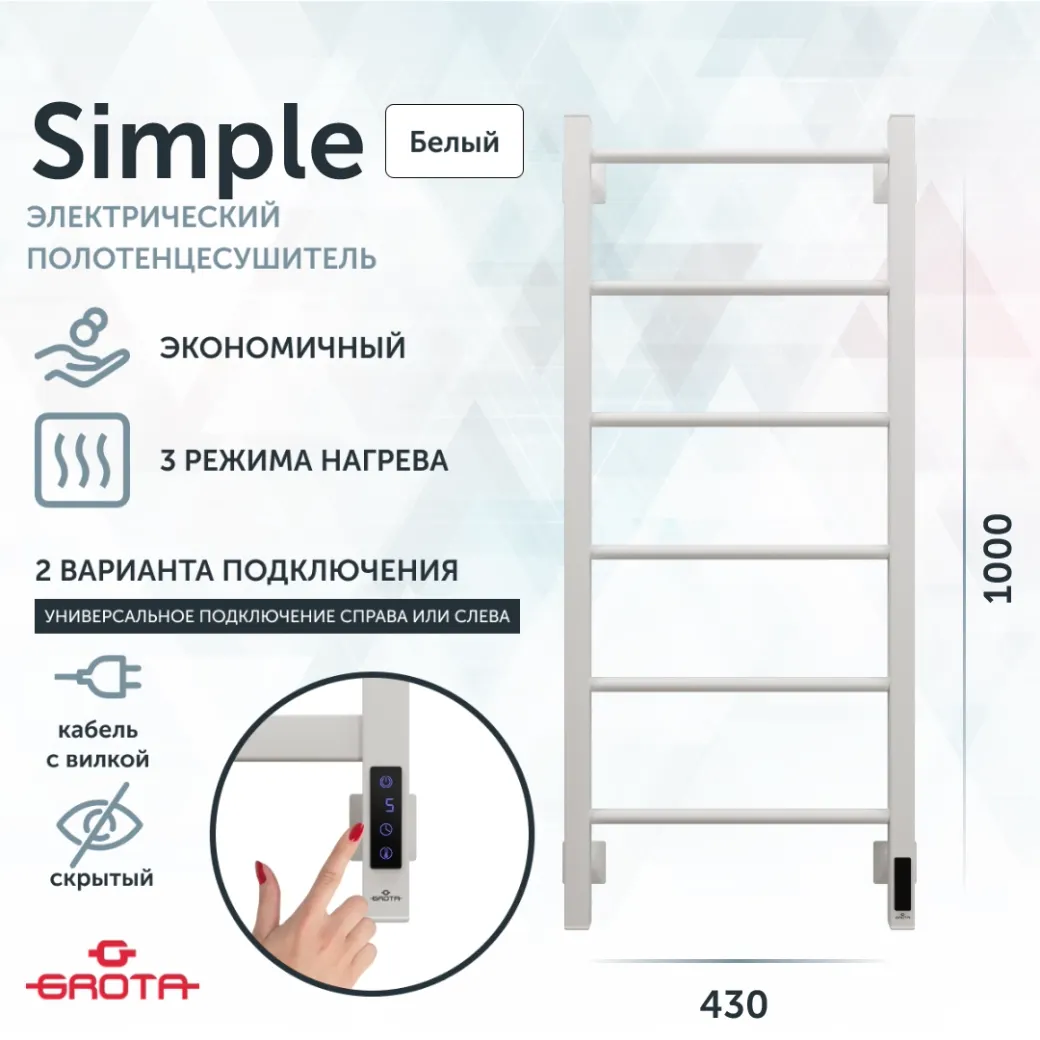 Полотенцесушитель электрический Grota Simple K 430х1000 белый арт-Simple K 430х1000 RAL9016 EL