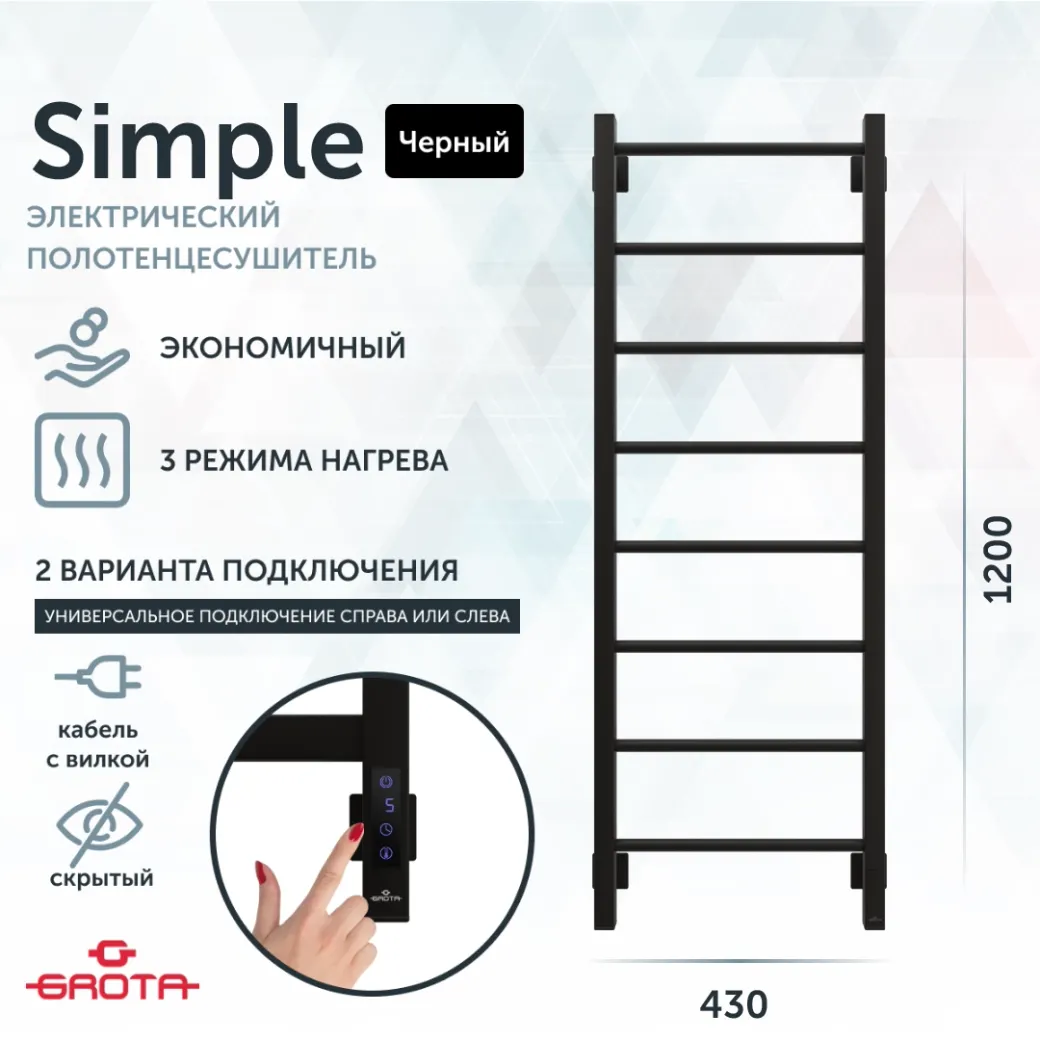 Полотенцесушитель электрический Grota Simple K 430х1200 черный арт-Simple K 430х1200 RAL9005 EL