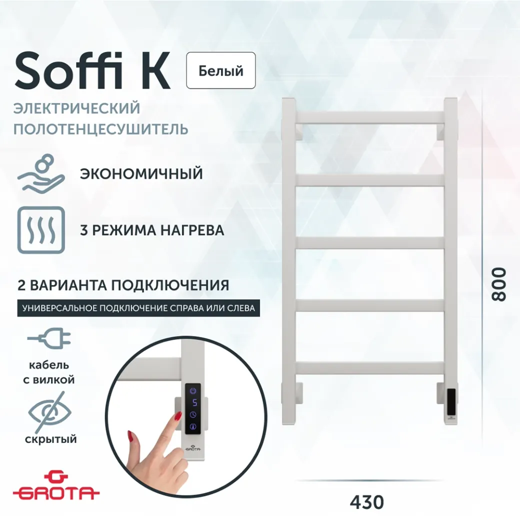 Полотенцесушитель электрический Grota Soffi K 430х800 белый арт-Soffi K 430х800 RAL9016 EL — фото 6, Электрические полотенцесушители