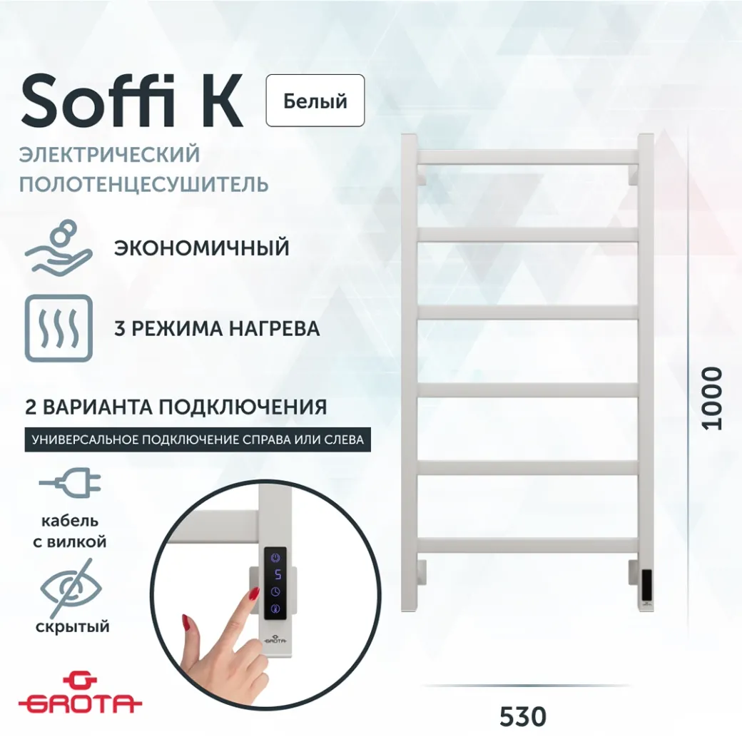 Полотенцесушитель электрический Grota Soffi K 530х1000 белый арт-Soffi K 530х1000 RAL9016 EL — фото 5, Электрические полотенцесушители