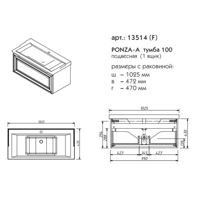 ПОНЦА тумба 100 13514-B231 — фото 1, Комоды и тумбы для ванной комнаты