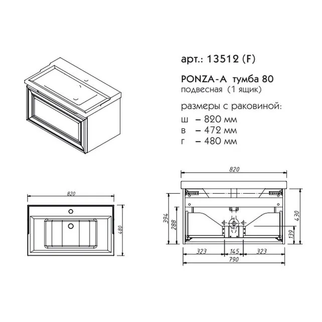 ПОНЦА тумба 80 13512-В231 — фото 1, Комоды и тумбы для ванной комнаты