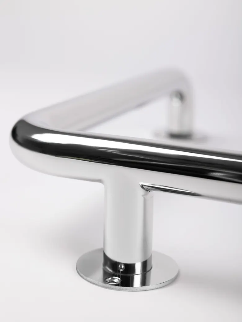 Поручни предназначены для использования в качестве дополнительной опоры в ванных и туалетных комнатах. Подходят для лиц с ограниченными возможностями. Основной материал – труба из нержавеющей стали диаметром 32,0мм х 1,5мм. ОПИСАНИЕ o Форма и размеры поручней обеспечивают максимальное удобство их захвата и стабильную фиксацию кисти руки для каждой конкретной ситуации в процессе использования; o Материал: нержавеющая сталь AISI 304, диаметр трубы 32х1,5 мм. Толщина металла и диаметр трубы поручня делают его очень прочным; o Электролитно-плазменная полировка обеспечивает идеально ровную и гладкую поверхность, устойчивую к воздействию моющих средств, применяемых при дезинфекции; o Подвесной, надежно крепится к стене с помощью монтажной пластины и 4х болтов, которые идут в комплекте. Выдерживает распределенную нагрузку до 120 кг; o Подходит для общественных санузлов, душевых кабин и ванных комнат; o Продукция сертифицирована, соответствует требованиям ГОСТ Р 51261-2022; o Гарантия: 10 лет