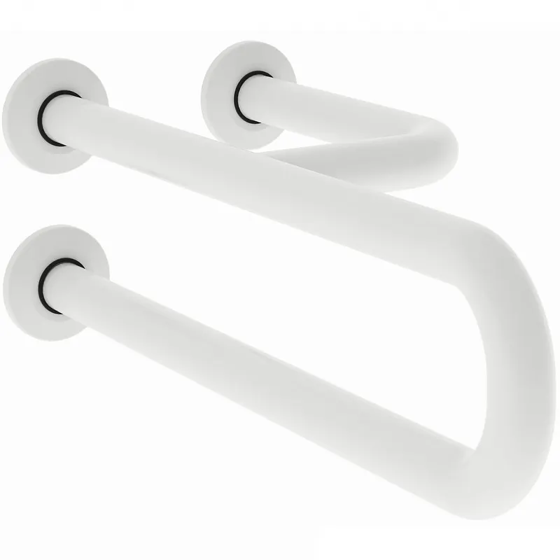 Поручень Nofer 15048.W. Предназначен для людей с ограниченными возможностями.Характеристики: Цвет: белый. Материал: нержавеющая сталь AISI 304 толщиной 1,5 мм. Размеры (ШхВхД): 60х24х23,4 см. Диаметр трубы: 3,2 см. Максимальная нагрузка: 120 кг. Ориентация: левая. Монтаж: на стену. Имеет три точки опоры. В комплекте поставки: поручень.