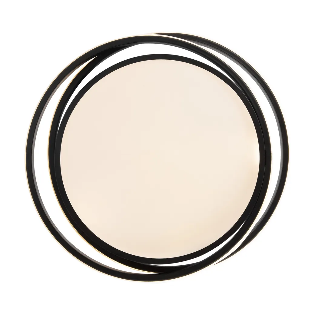 Арматура из металла и акрила. Цвет – черный. Трендовый элемент дизайна – кольца, расположенные под необычным углом. Энергоэффективный LED-источник дает яркую и комфортную для зрения подсветку.