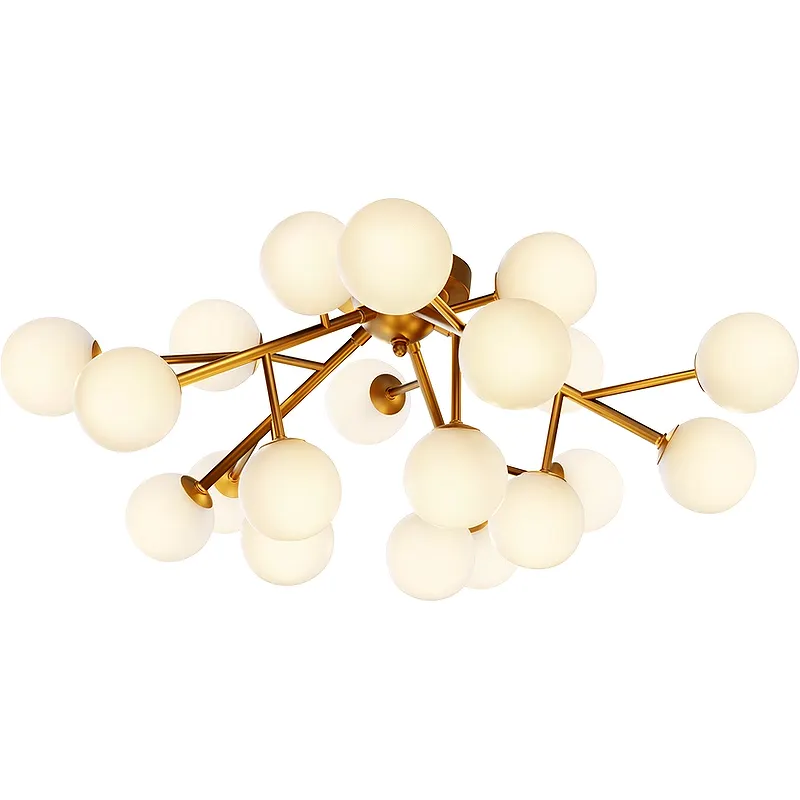 - Эстетика и качество: Металлическая арматура в сочетании с белыми стеклянными плафонами создаёт изысканный вид.