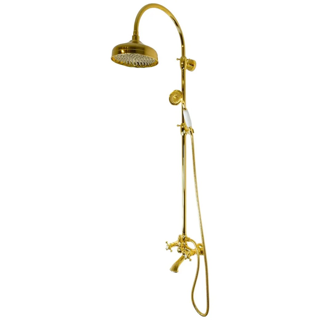 PRESTIGE Душевой настенный гарнитур (см-ль д/ванны/колонна ARCO/верхн.душ/шланг/ручной душ), золото арт-32793
