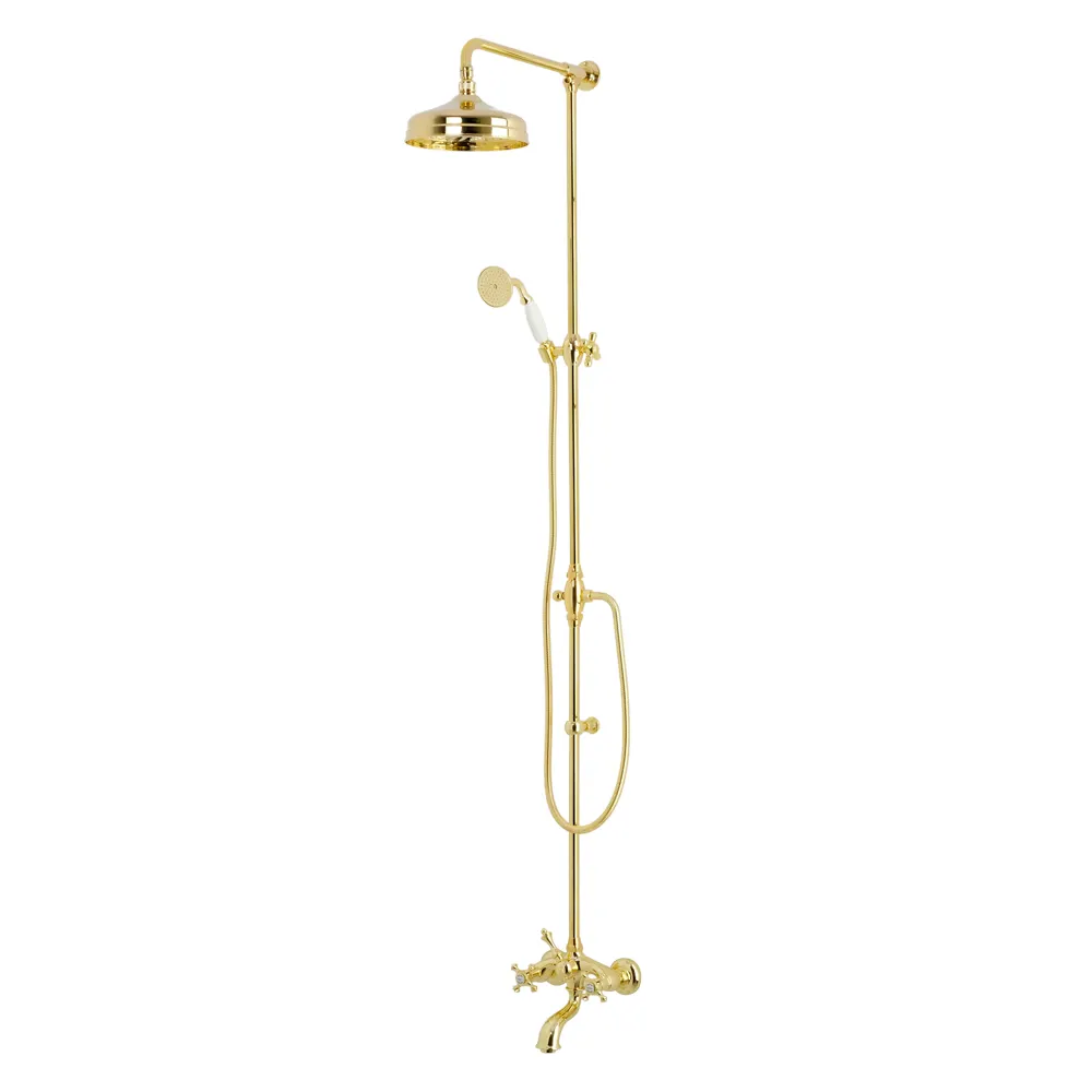 PRESTIGE Душевой настенный гарнитур (см-ль д/ванны/колонна RETRO/верхн.душ/шланг/ручной душ), золото арт-32126