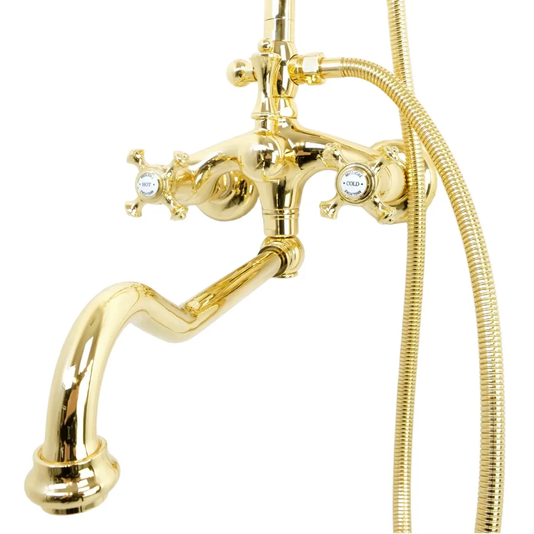 PRESTIGE Душевой настенный гарнитур (см-ль д/ванны/колонна/верхн.душ/шланг/ручной душ), золото арт-32144