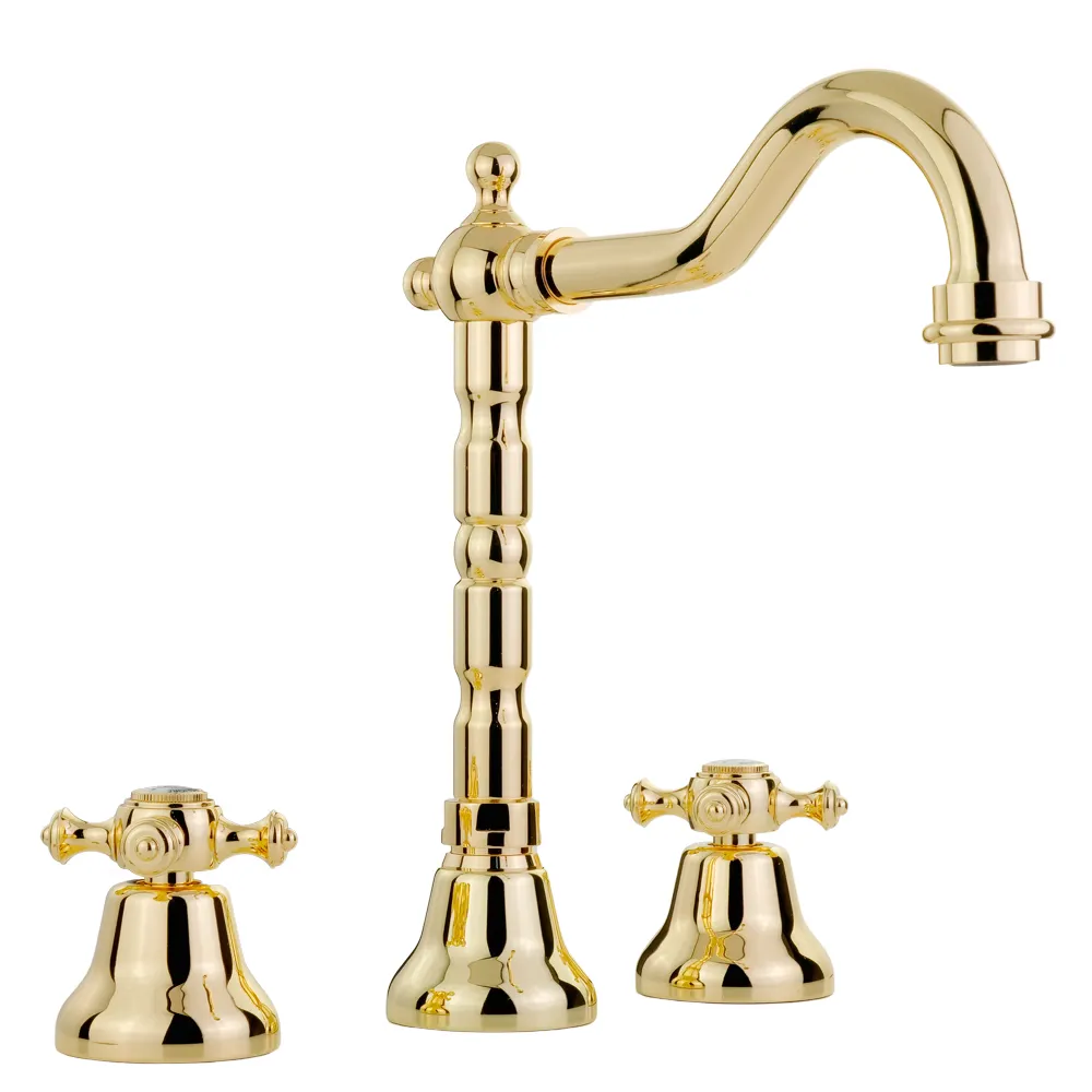 PRESTIGE См-ль д/раковины излив "змейка", на 3 отв., донный клапан "click-clack", золото арт-31619