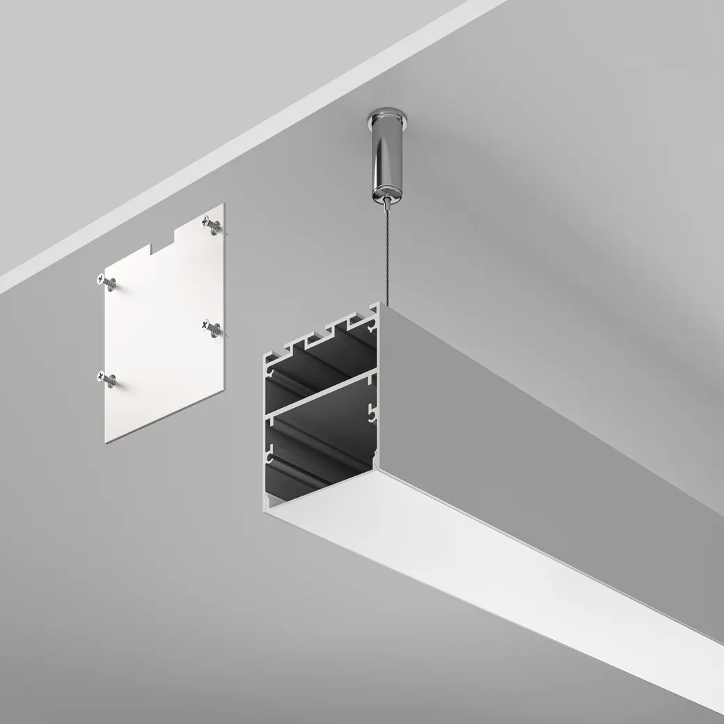 Накладной-подвесной профиль выполнен из анодированного алюминия, который отличается повышенной устойчивостью к коррозии и повреждениям. Предназначен для декоративного, основного и контурного освещения, а также подсветки стен и элементов интерьера. Позволяет продлить срок службы светодиодных лент, защищая их от внешних воздействий и эффективно рассеивая тепло.