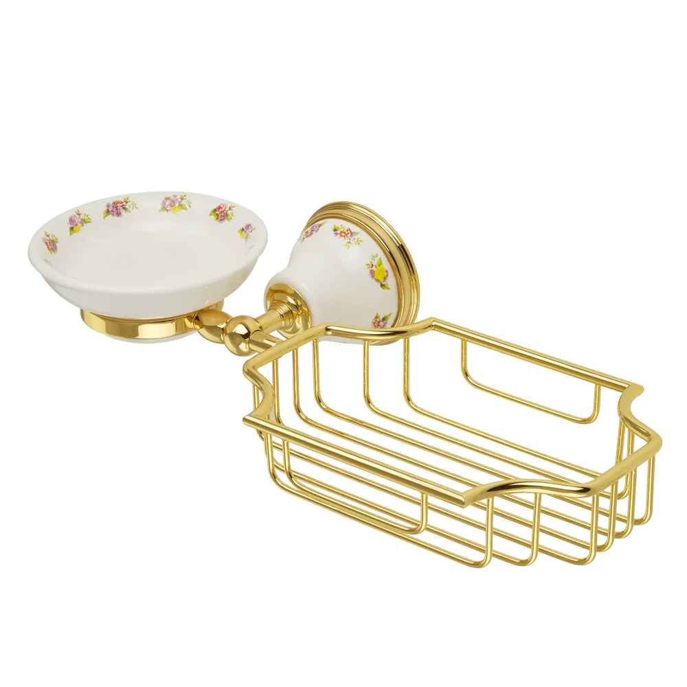 PROVANCE Мыльница с корзинкой настенная, керамика с декором/золото арт-17699