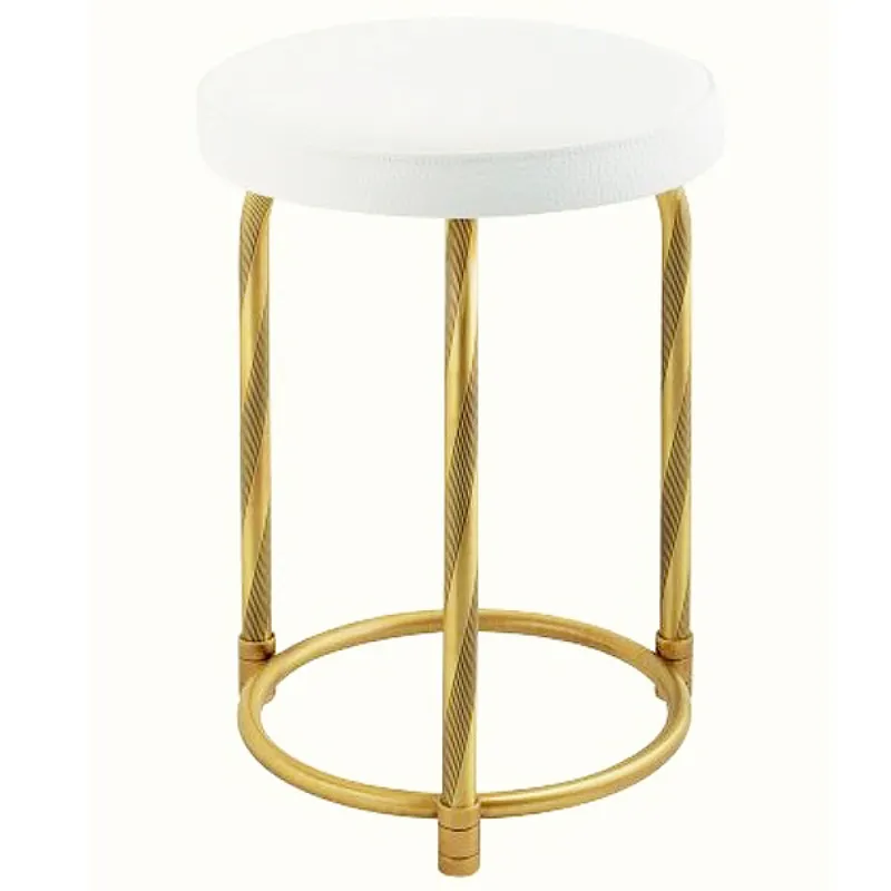 Пуф Migliore Complementi 24761 для ванной комнаты.Характеристики: Габаритные размеры (ШхВхГ): 300х450х300 мм. Основание: материал латунь, цвет бронза с патинированием. Сиденье: материал экокожа, цвет белый. Форма: круглая; на четырёх ножках. В комплекте поставки: Пуф.