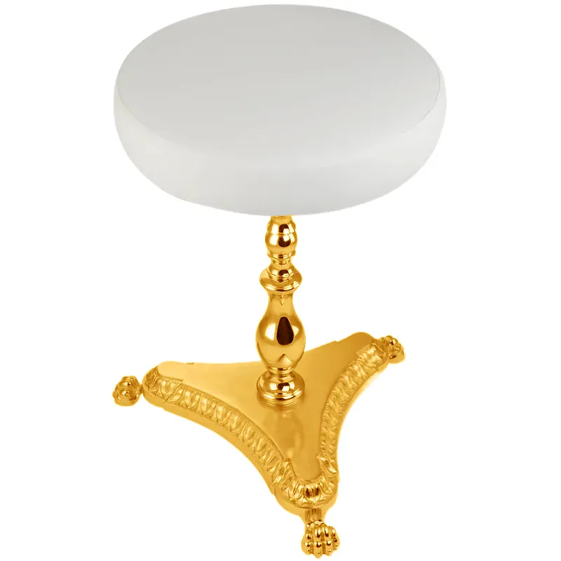 Пуф Migliore Elisabetta 17075 для ванной комнаты.Характеристики: Габаритные размеры (ШхВхГ): 415х505х415 мм. Основание: материал латунь, цвет золото. Сиденье: материал экокожа, цвет белый. Форма: круглая; на одной ножке. В комплекте поставки: Пуф.