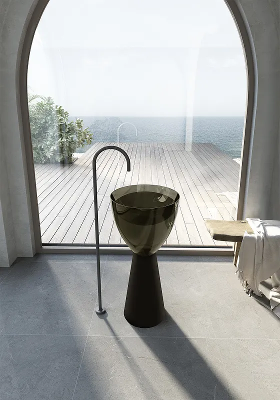 - Черная раковина напольная: Необычное цветовое решение привлекает внимание и добавляет шарм.