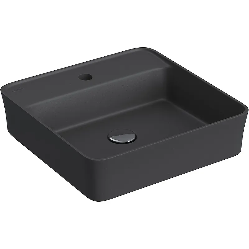 Раковина Berges Ego SL 45 182024.Характеристики: Цвет: антрацит матовый. Материал: санфарфор. Форма: квадратная. Одно готовое отверстие под смеситель. Размер (ШхВхД): 450x115x450 мм. Диаметр сливного отверстия: 45 мм. Монтаж: накладной. В комплекте поставки: Раковина.