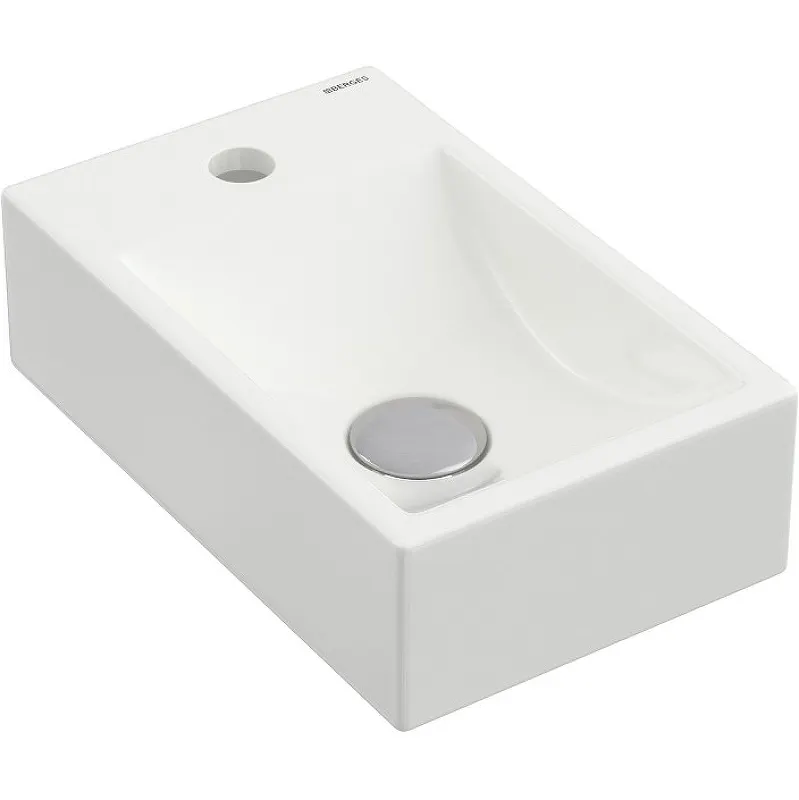 Раковина Berges Small 37 L 182009.Характеристики: Цвет: белый глянец. Материал: санфарфор. Форма: прямоугольная. Отверстие под смеситель: 1. Размеры (ШхВхД): 370х230x110 мм. Монтаж: подвесная / накладная. В комплекте поставки: Раковина. Крепеж.
