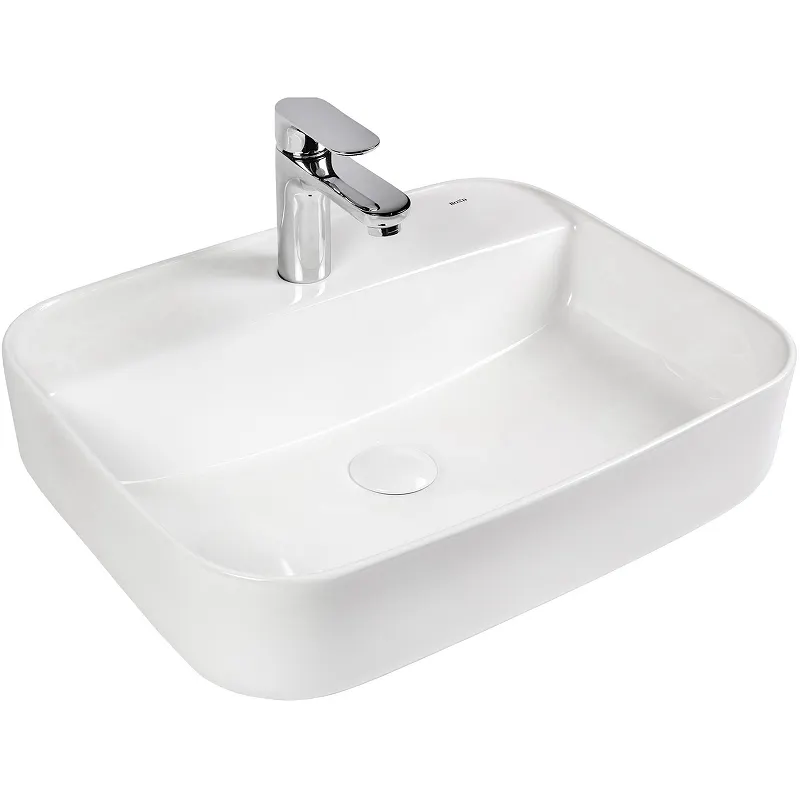 - Удобство использования: Накладной монтаж упрощает установку и делает раковину удобной в эксплуатации.