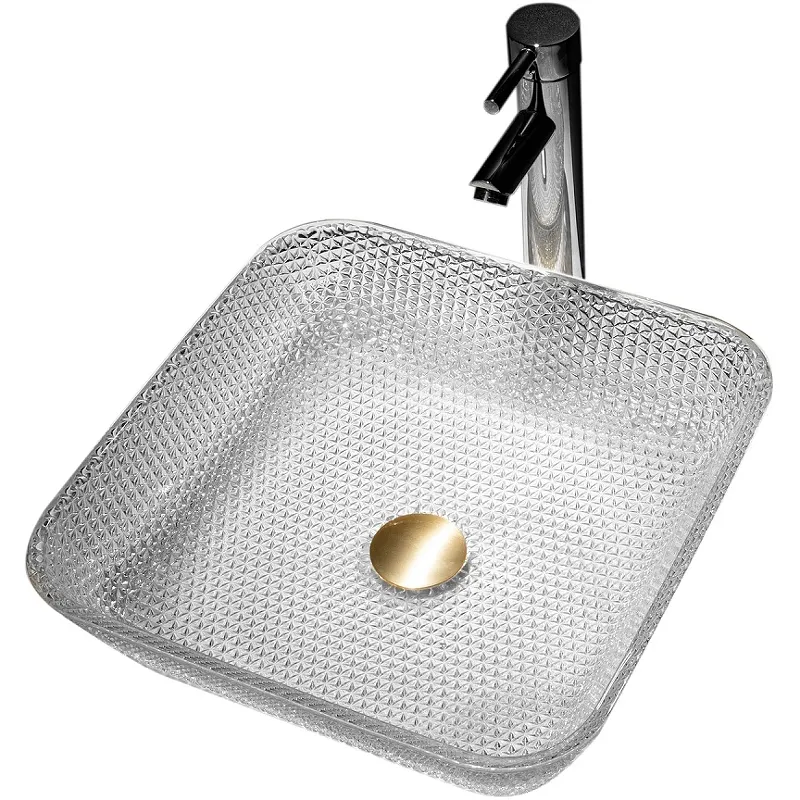 Раковина-чаша Abber Glas 39 AK2311.Характеристики: Цвет: прозрачный. Материал: стекло. Размеры (ШхВхГ): 390x110x390мм. Диаметр слива: 45 мм. Форма: квадратная. Монтаж: накладной. В комплекте поставки: Раковина-чаша.