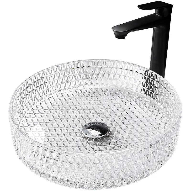 - Эстетическая универсальность: Прозрачная раковина-чаша легко вписывается в любой интерьер, добавляя ему лёгкость и изящество.