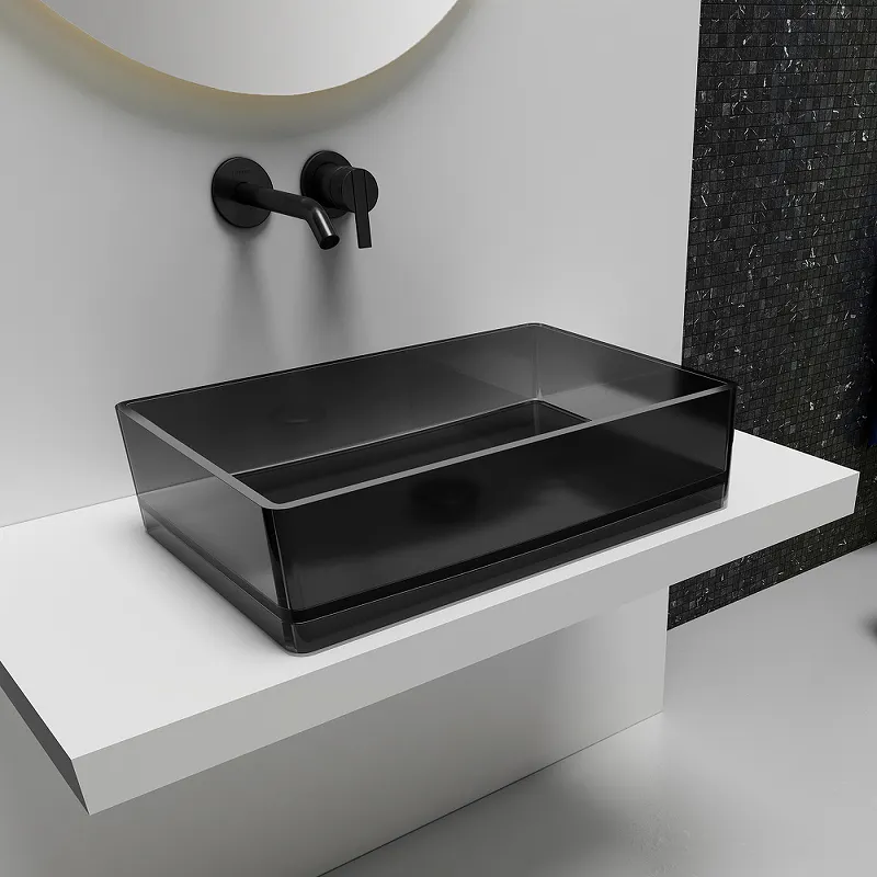 - Эстетика и функциональность: Черная раковина для ванны на столешницу без отверстий под смеситель создаёт минималистичный и чистый вид.