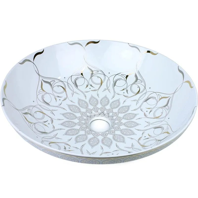 Раковина-чаша Bronze de Luxe 40 2008 Белая глянецевая с серо-золотым декором