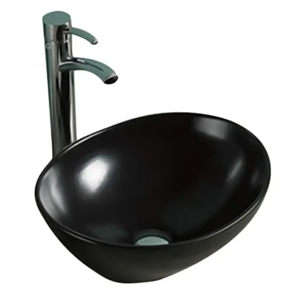 - Современный дизайн: Овальная форма и черный цвет раковины подчёркивают её изысканность, делая её центральным элементом в ванной комнате.